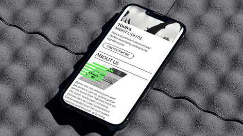 For a tour company celebrating Berlin's street art and subcultures, I designed a website and visual identity that captures the city's unique history and bold spirit. The design features vibrant green graphic elements layered over historic photos of the Berlin Wall, symbolizing social dissonance and the defacing of the wall, which is credited with igniting the city's unrivaled street art scene.